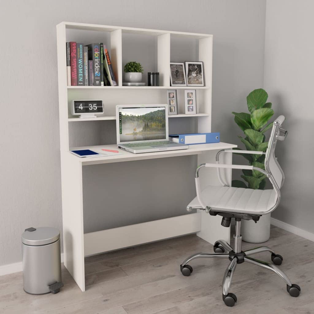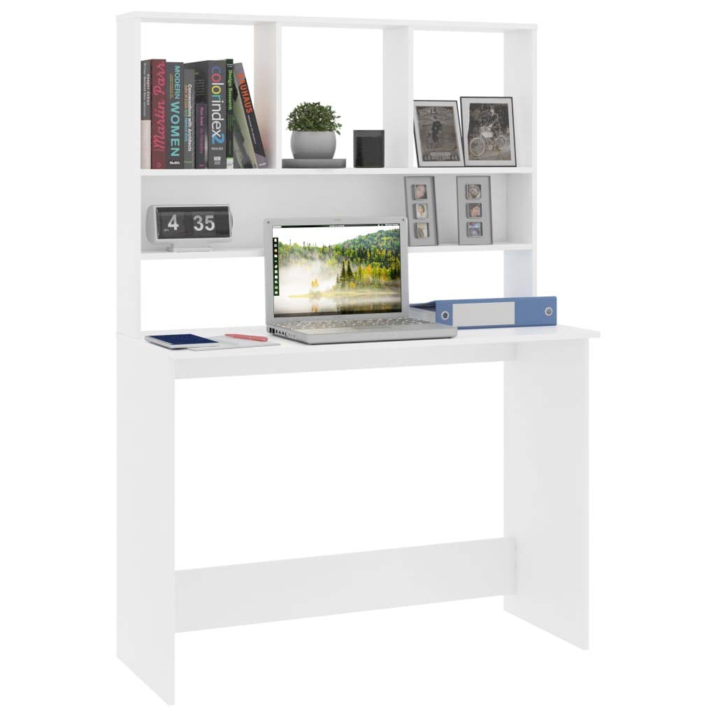 vidaXL Engineered Wood Desk with Built-in Shelves, Space-Saving Design, Easy Assembly, Ideal for Office and Dorms, White, 43.3"x17.7"x61.8"