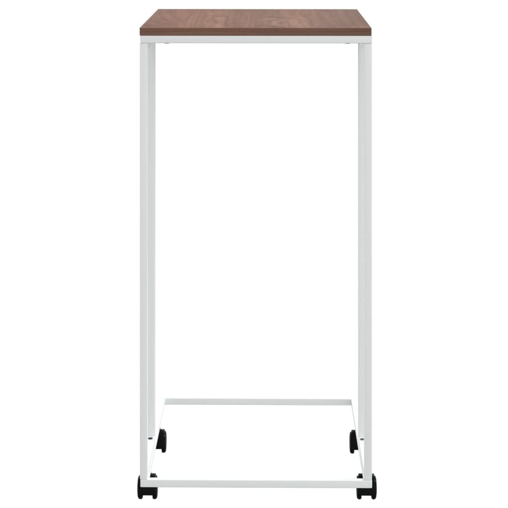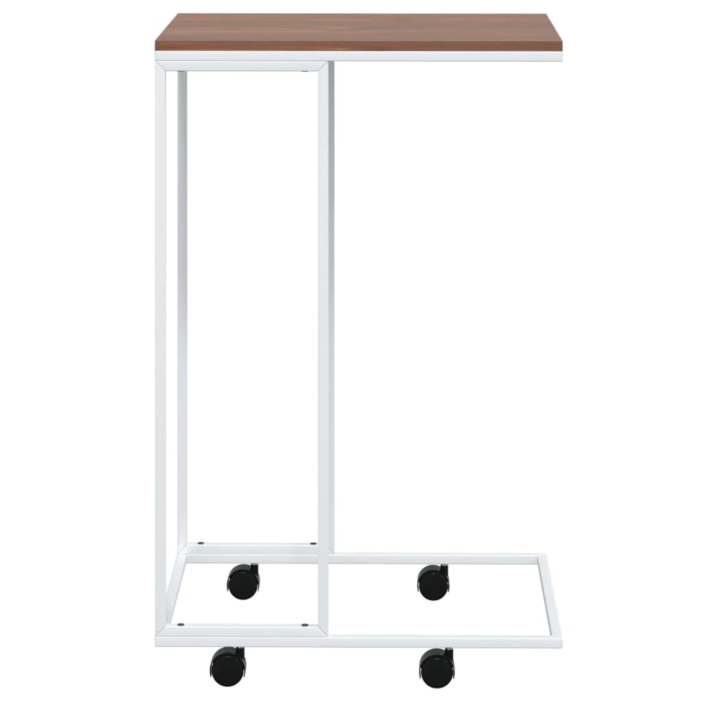 vidaXL Engineered Wood Side Table - Modern White C-Shaped Design with Wheels, Strong Iron Frame for Living Room, Bedroom, & Office Use