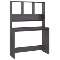 vidaXL High Gloss Gray Engineered Wood Desk with Upper Cabinet and Shelves - 43.3" x 17.7" x 61.8" - Durable, Multifunctional and Space Saving Office Desk for Home and Work Use