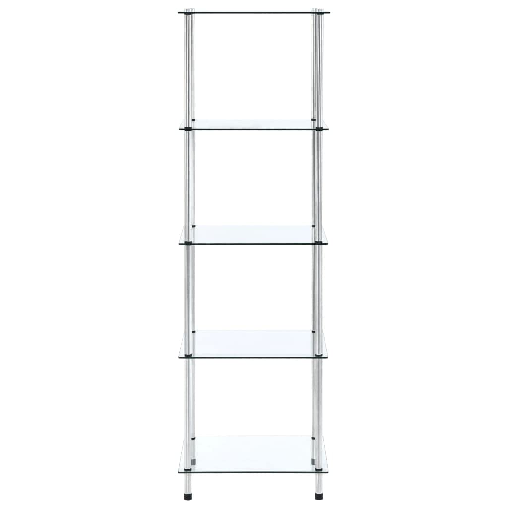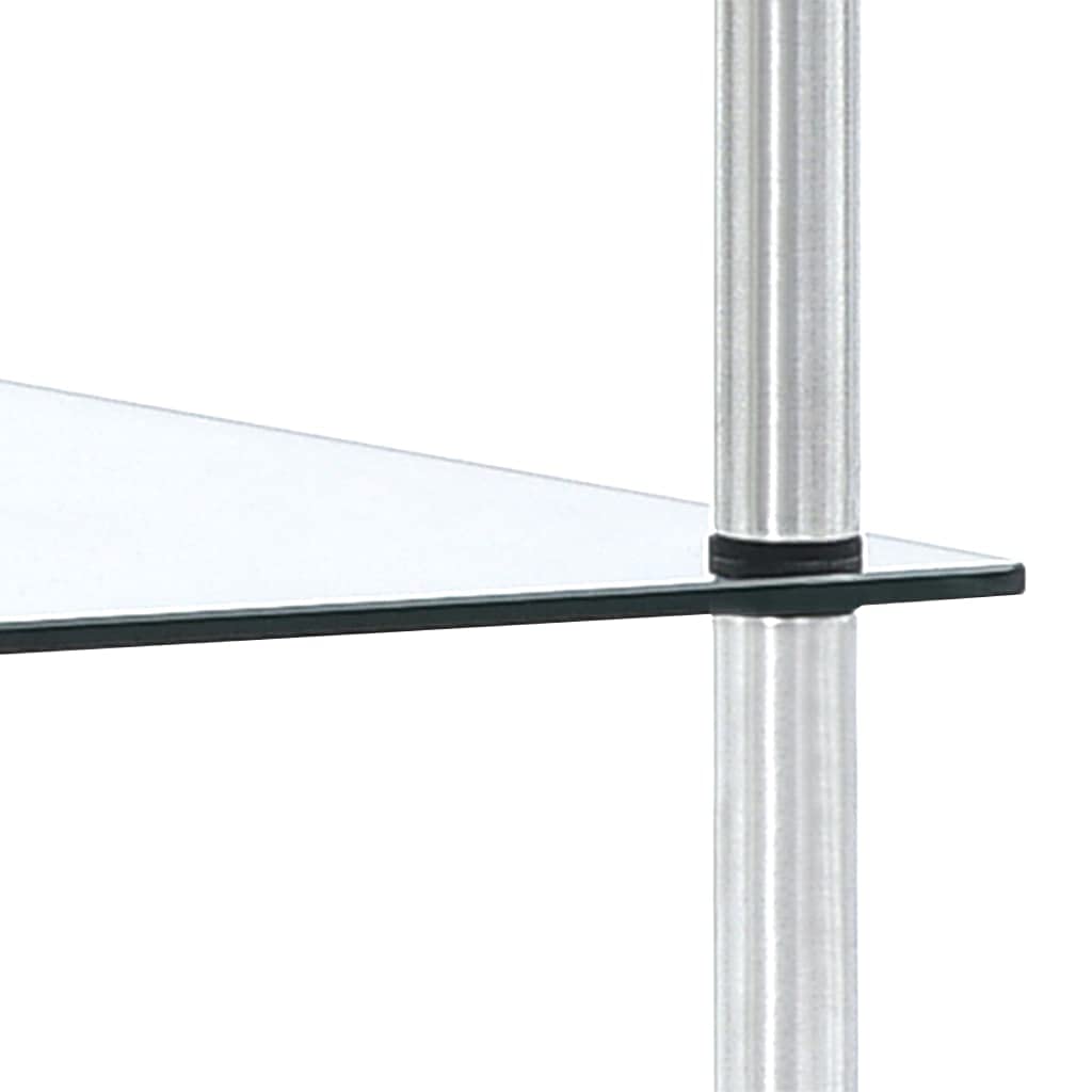 Instantly add a touch of style to your living space with our contemporary and practical glass shelf! The showcase is designed with five tiers for ample storage space. You can use the multipurpose shelf in living room or office for displaying your collectables, photo frames, potted plants, or in the bathroom for keeping your essentials organized. Made of thick tempered glass and heavy-durable stainless steel, this shelf is exceedingly sturdy and safe. Additionally, the smooth surface is easy to clean with only a damp cloth. Our shelf is easy to assemble.