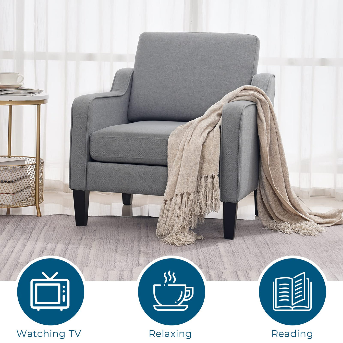 Stuffed With Plush,High-Desity Foam Making Our Single Sofa Chair Offer High Levels Of Comfort And Allow For Relaxation After A Hard Day Work.20' Deep Seating Provides Plenty Of Room To Curl Up To Read Or Watch Movies.