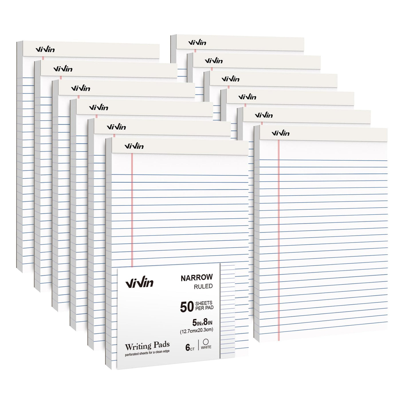 Vivin 5 X 8 Inch Note Pads, 12 Pack, Narrow Ruled, 50 Sheets Per Writing Pad, Perforated, Legal Pads Ideal For Home, Office, Bus