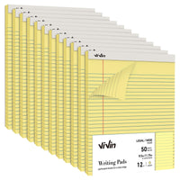 Vivin Legal Pads 8.5 X 11 Inch, Wide Ruled Note Pads, 12 Pack, 50 Sheet/Pad, Perforated Writing Pads, Notepads For Office Home S