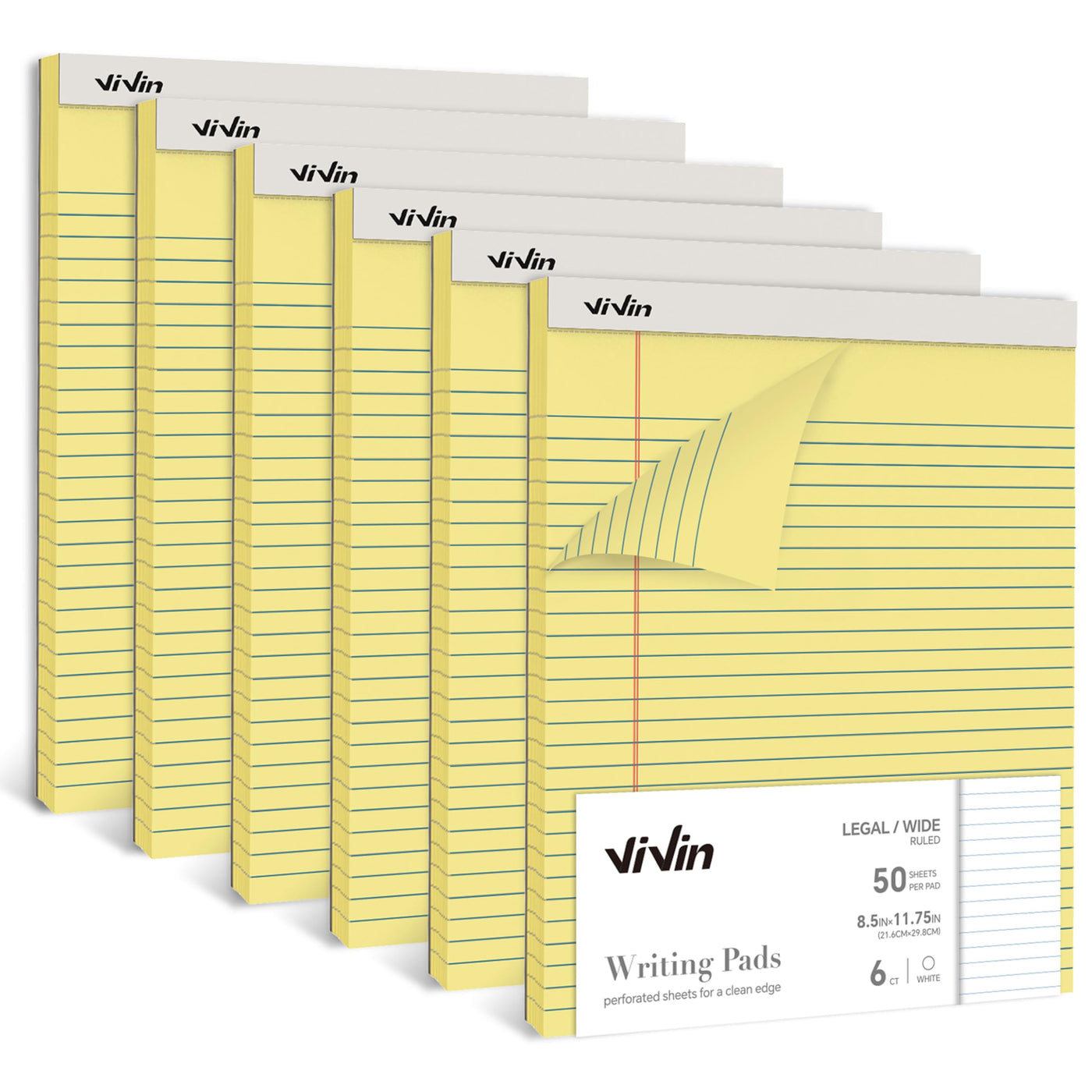Vivin Legal Pads 8.5 X 11 Inch, Wide Ruled Note Pads, 6 Pack, 50 Sheet/Pad, Notepads For Office Home School, 300 Sheets, Perfora