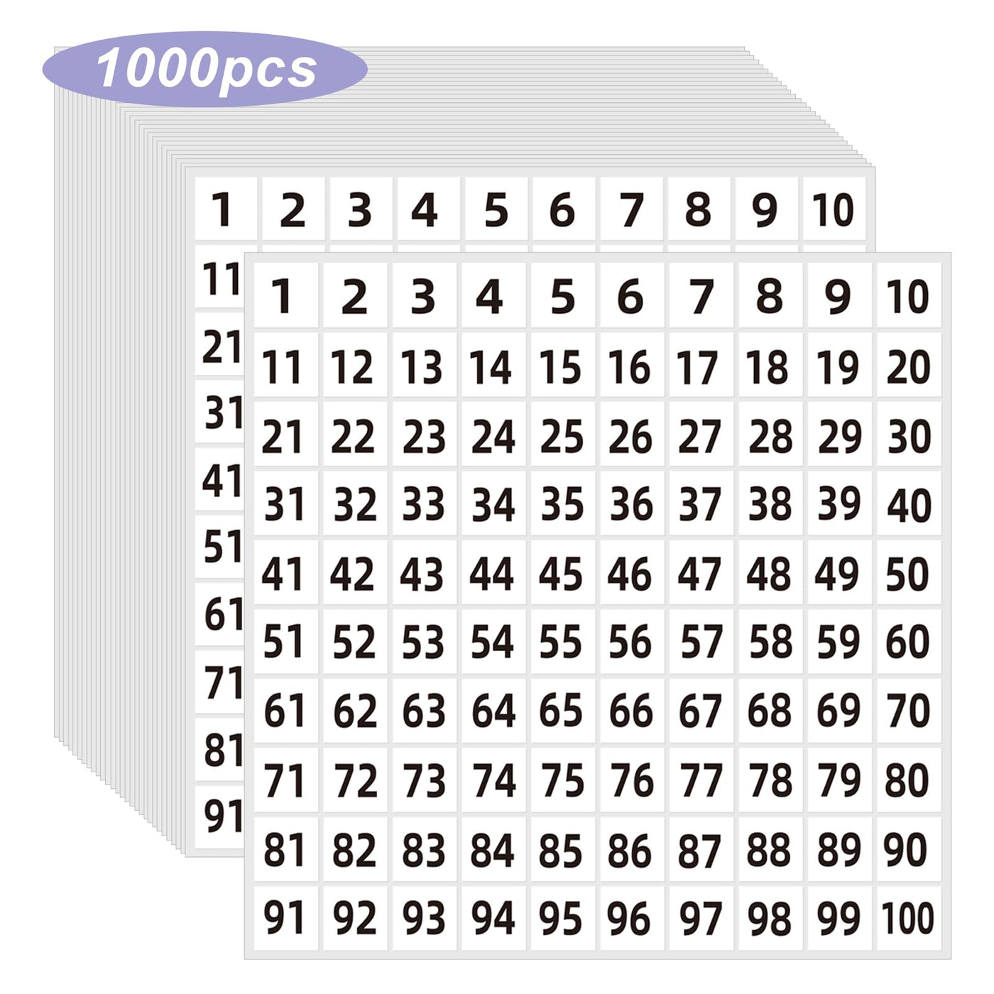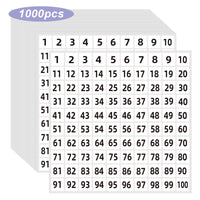 White Number Stickers 1-100, 1 Inch Consecutive Number Stickers, Square Small Self-Adhesive For Office, Classroom, Indoor, Boxes, Storage