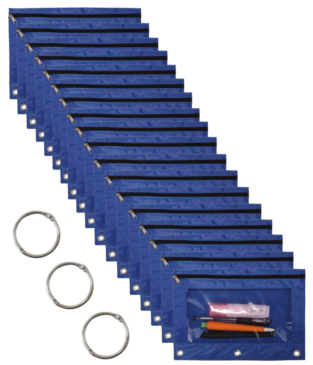 Wodison 18-Packs 3 Ring Pencil Pouch With Clear Window School Classroom Binder Pocket Case Office Stationery Bag Blue