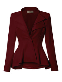 Women Double Notch Lapel Office Blazer Jk43864 1073T Wine Small