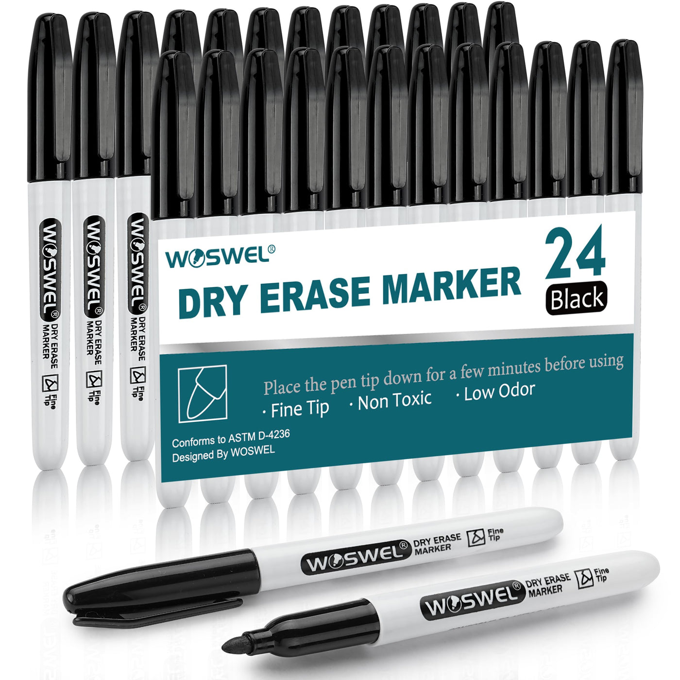 Woswel Dry Erase Markers,24 Pack Black Fine Tip Whiteboard Markers, Round Point Low Odor Dry Erase Marker For School Office And