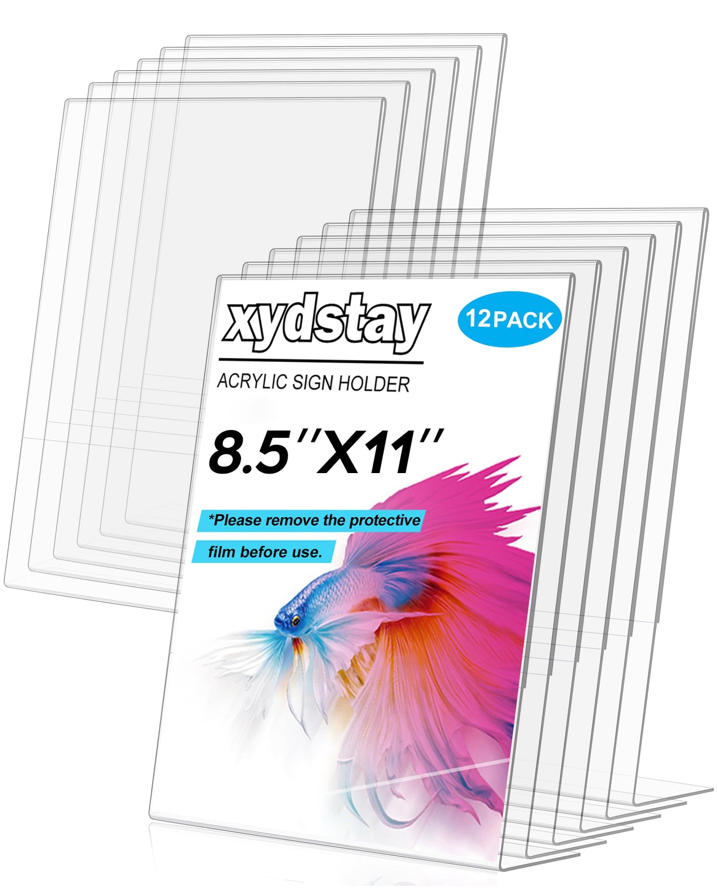 Xydstay 12Pack 8.5X11 Acrylic, L Shape Clear Plastic, Menu Holder, Unbreakable Table Sign Holder For Restaurant, Office, School,
