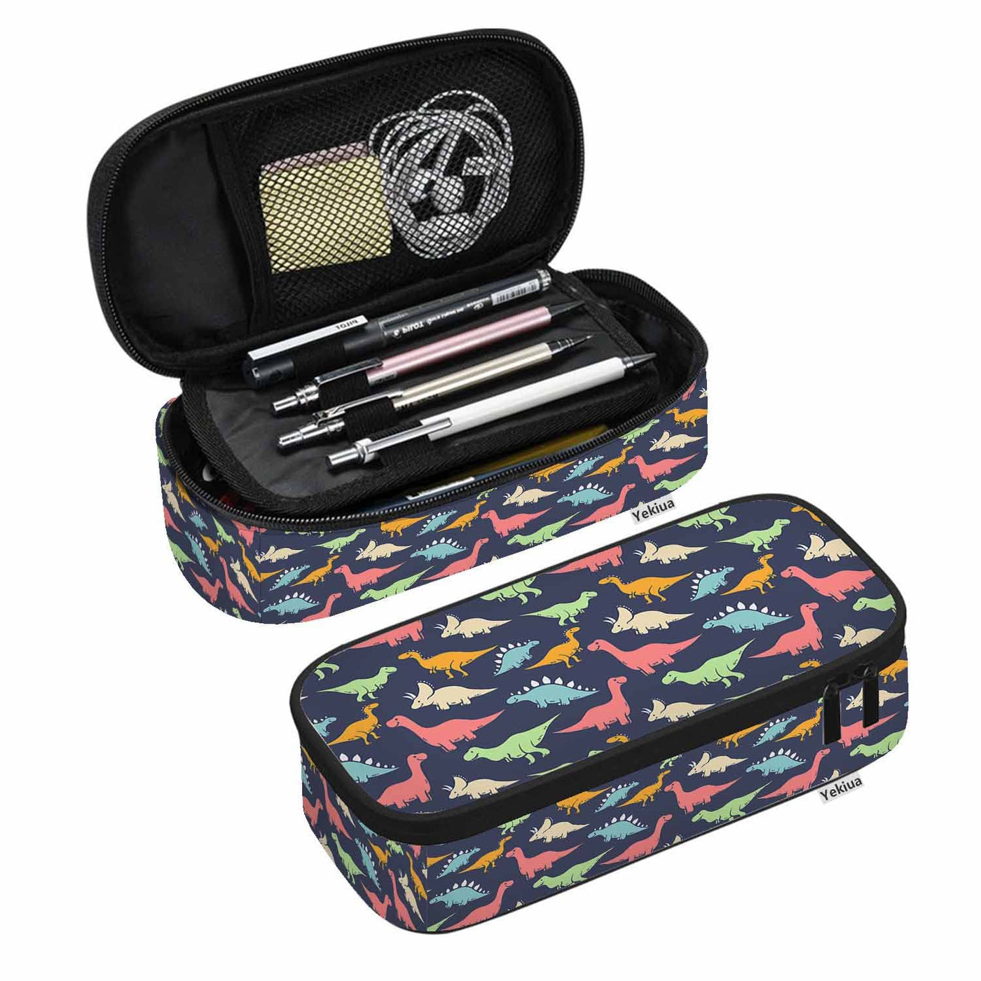 Yekiua Dinosaur Pencil Case Cartoon Dino Big Capacity Pencil Pouch Office College Makeup Bag Colorful
