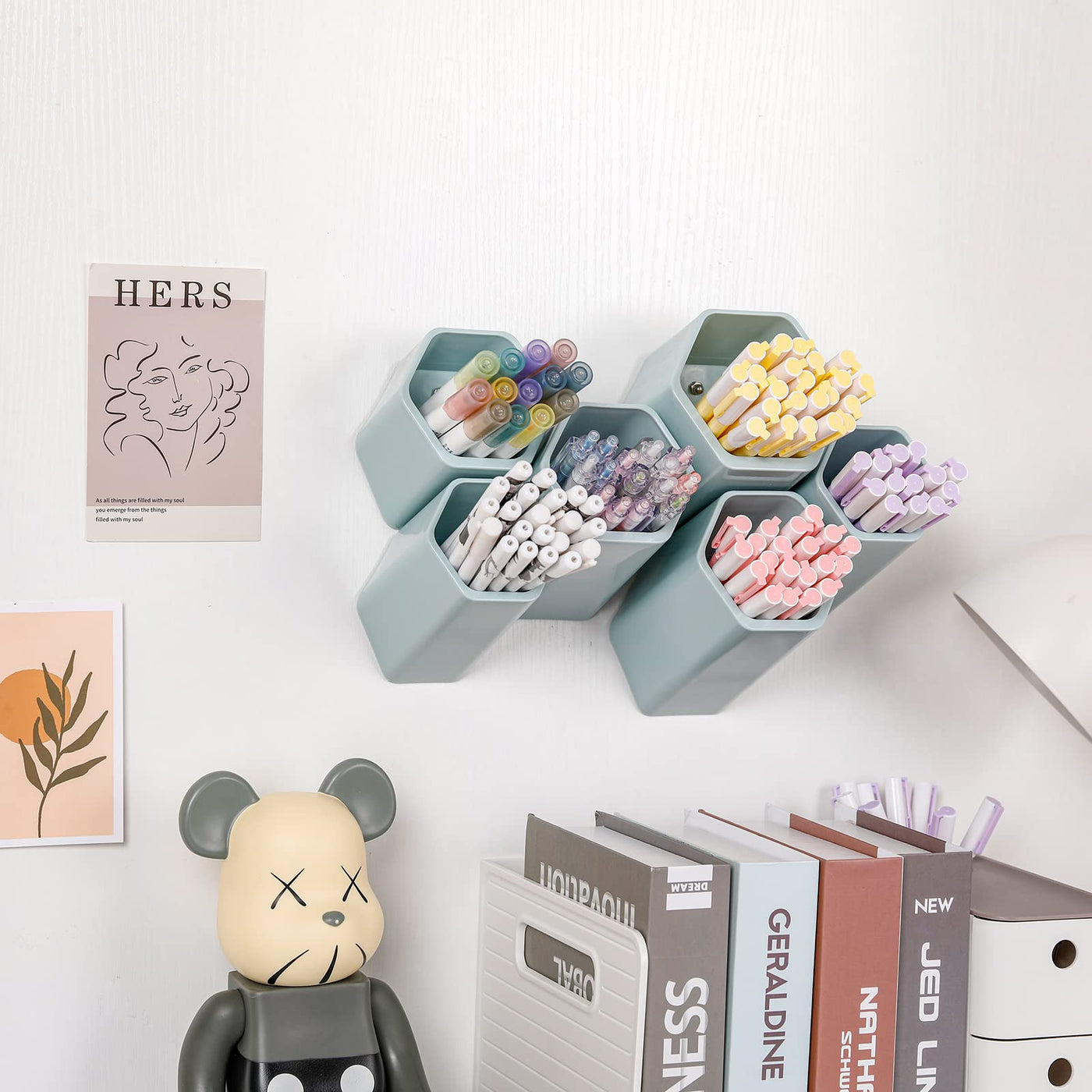 Yesesion Large Pencil Holder For Office, Adhesive Wall-Mounted Pen Cup Set With 6 Compartments, Detachable Marker Organizer For