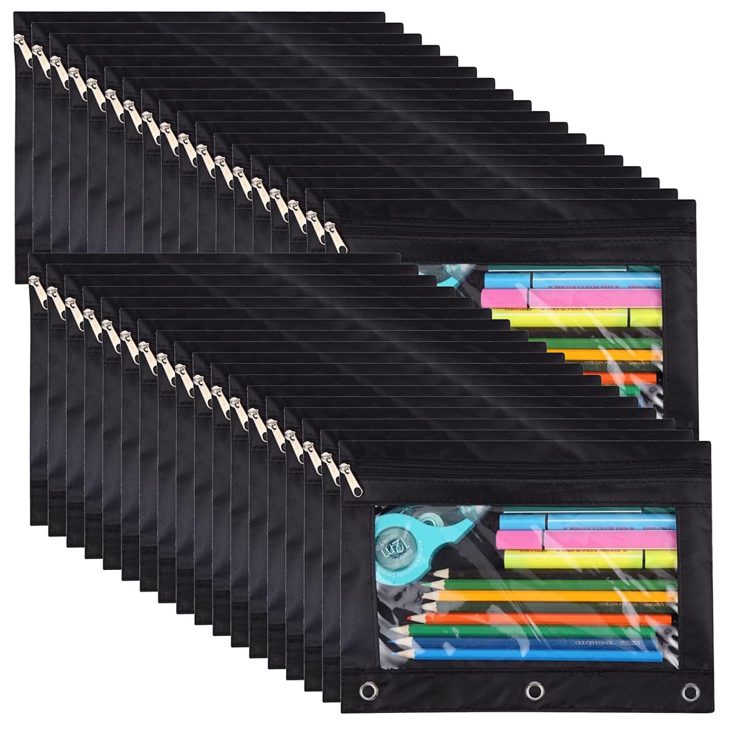 Yoeejob 36 Pack 3 Ring Binder Pencil Pouch With Clear Window, Clear Zipper Pencil Case Bulk Suitable For School And Office(Black