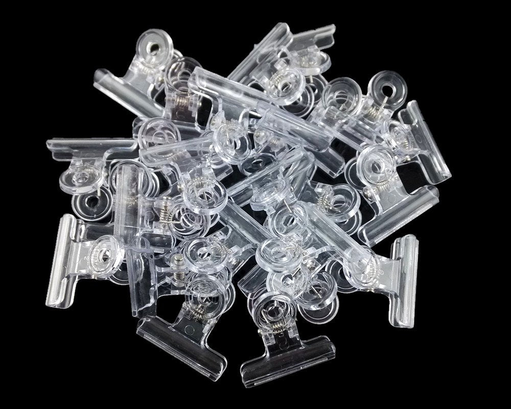 Yueton 24Pcs Plastic Bulldog Clips, Utility Paper Clips, Hinge Clips For Home, Office Use (Clear)