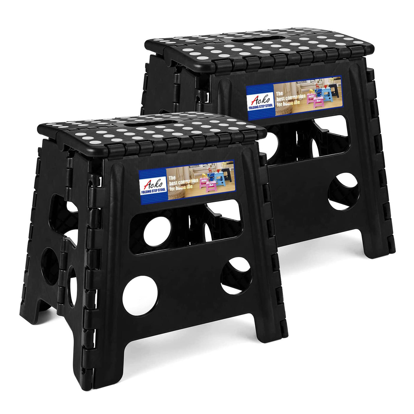Acko 2Pack Folding Step Stool - 13' Height Premium Heavy Duty Foldable Stool For Kids And Adults, Kitchen Garden Bathroom Stepping Stool (Black, 2Pack)