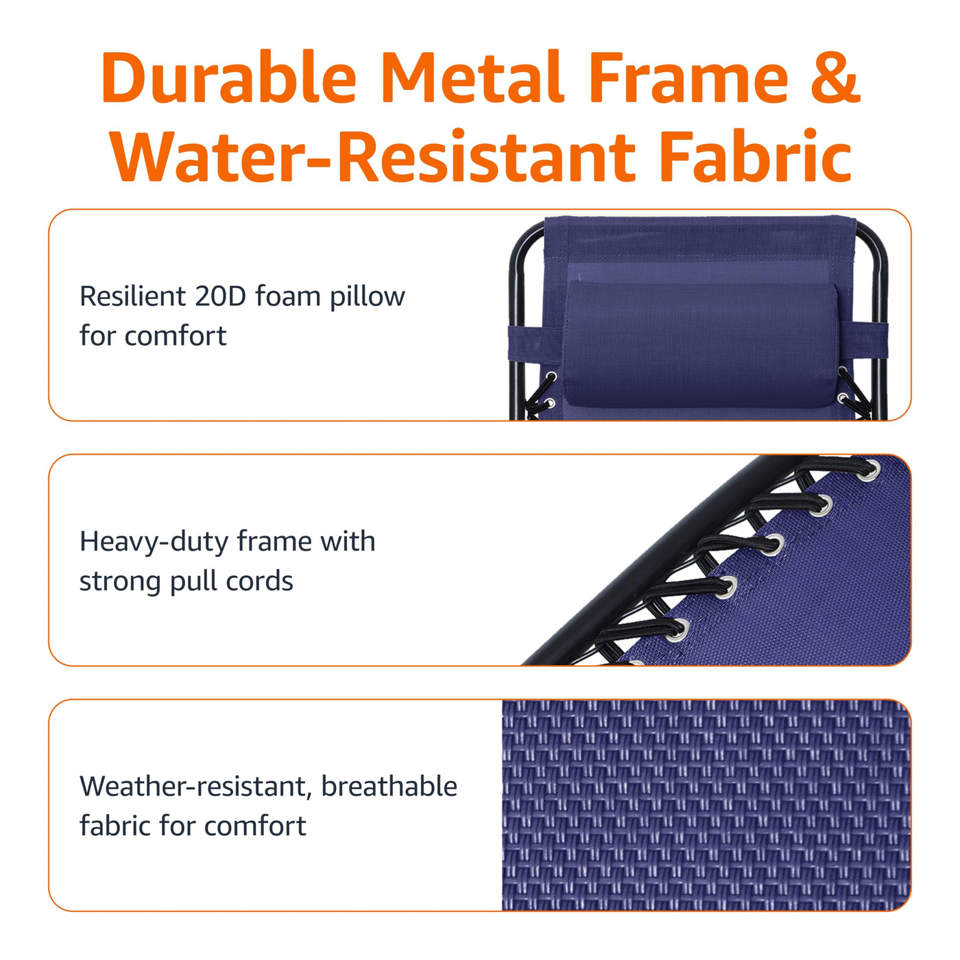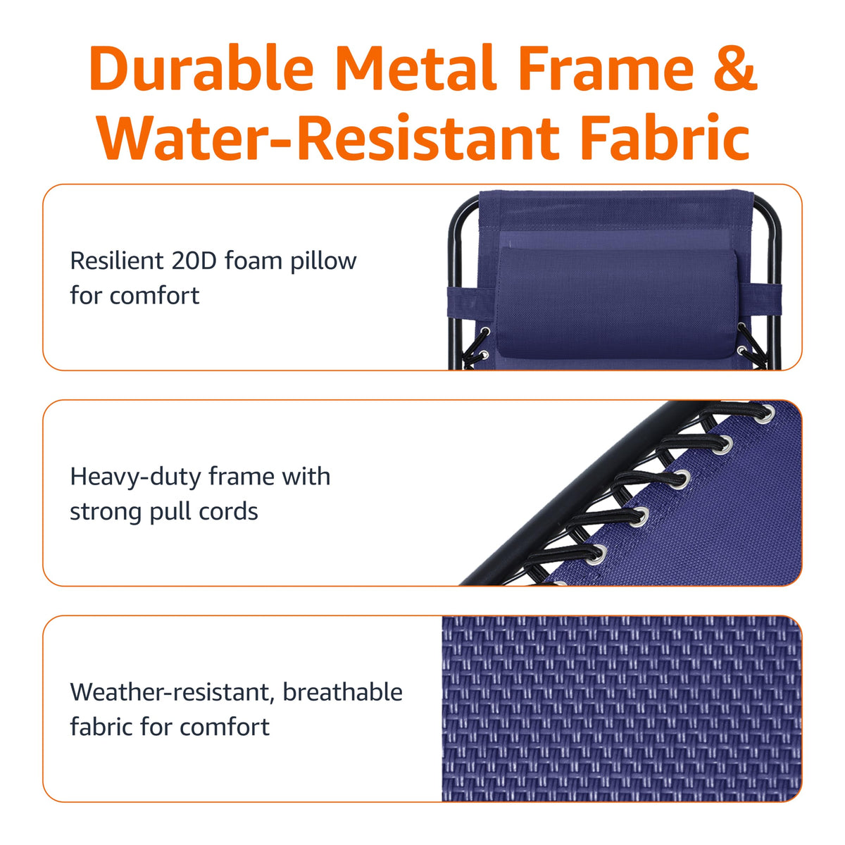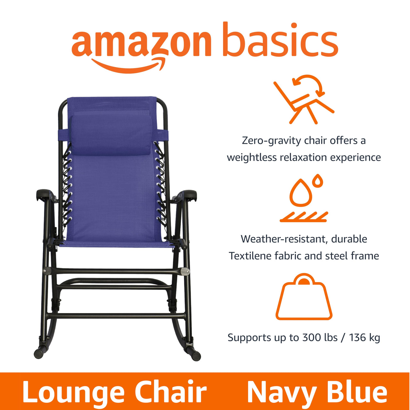 Product DescriptionAmazon Basics Outdoor Textilene Zero Gravity Folding Lounge Rocker with Pillow, NavyFrom the ManufacturerAmazon Basics