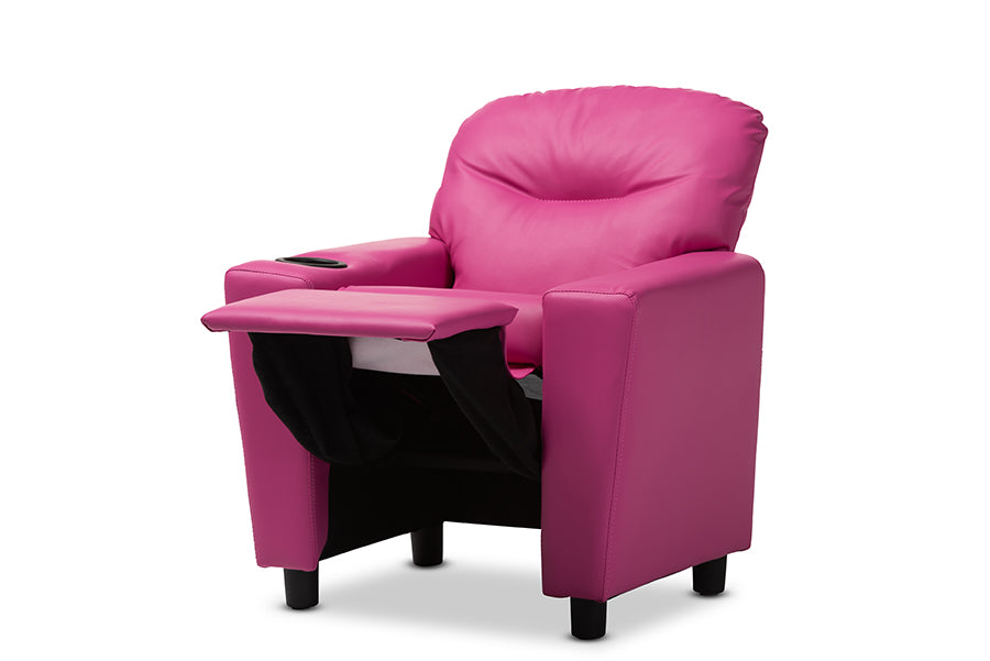 Baxton Studio Evonka Modern and Contemporary Magenta Pink Faux Leather Kids Recliner Chair