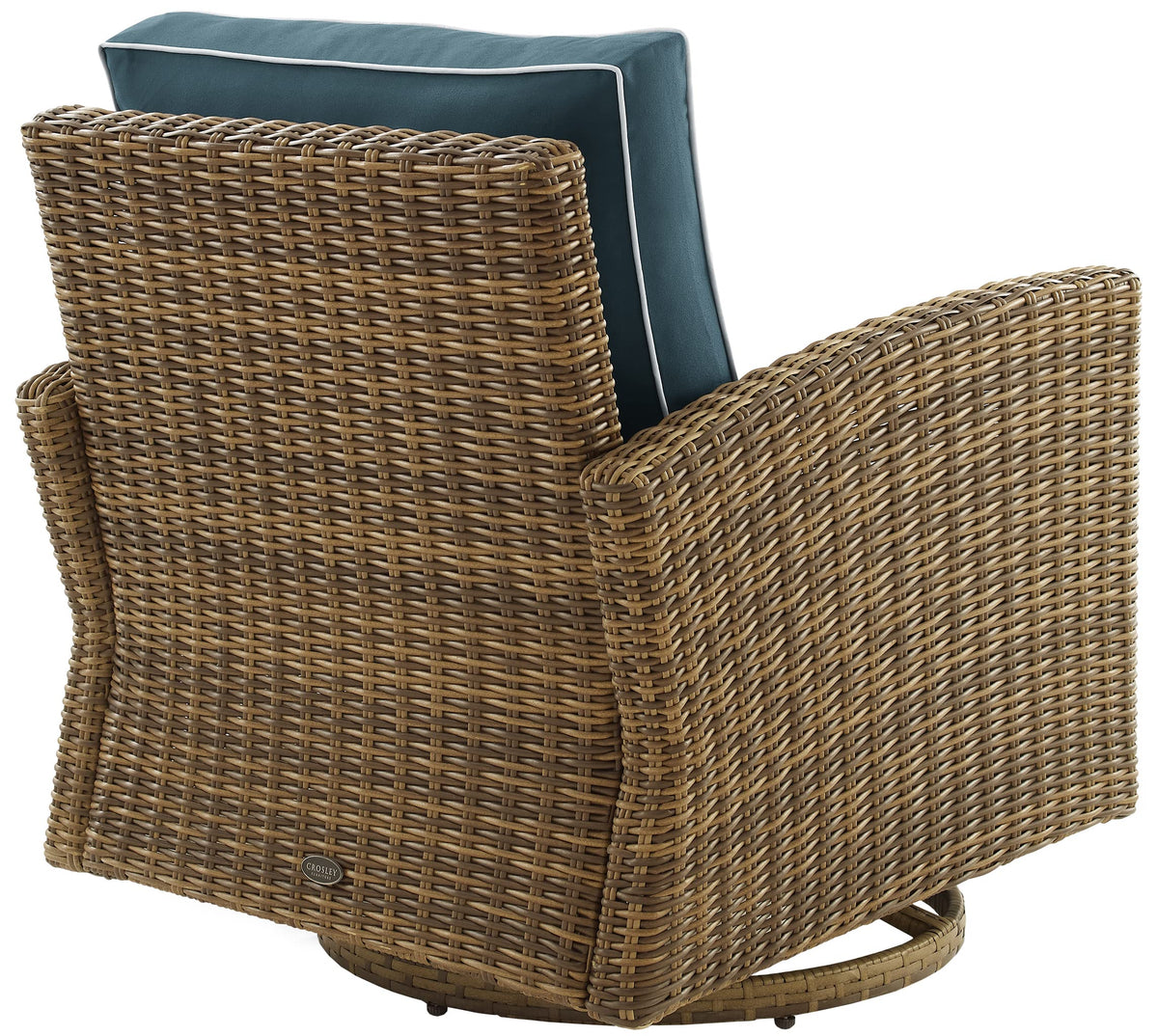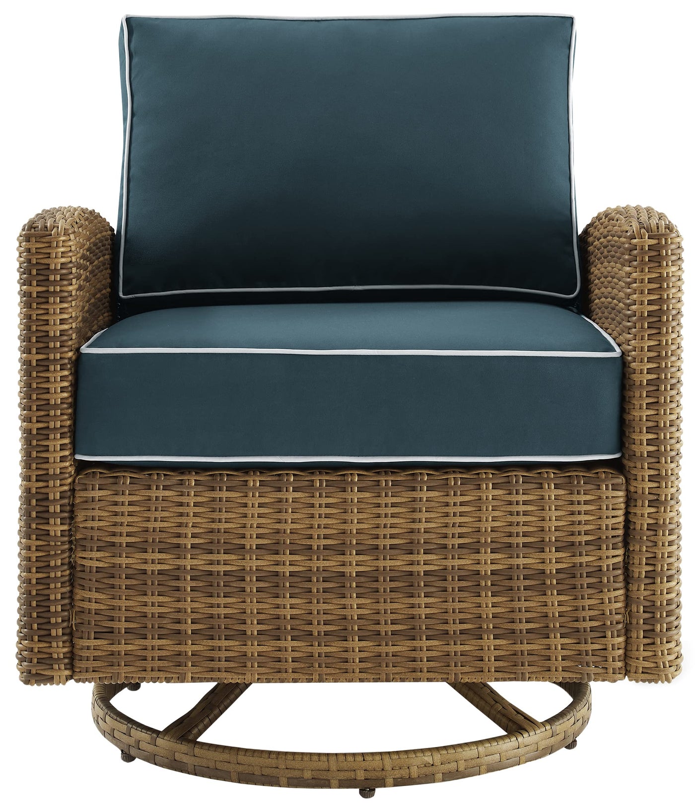 Crosley Furniture Bradenton 2-Piece Swivel Rocker Outdoor Chair Set, Wicker Patio Chairs For Porch, Deck, Brown With Navy Cushions