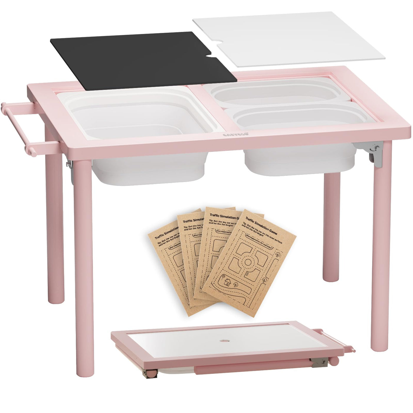 Easyego Sensory Table for Toddlers Kids Play Wooden Sand Water Table with Double-Sided Board & Foldable Storage Bins for Indoor