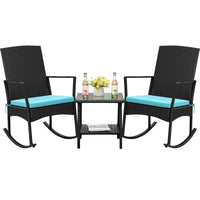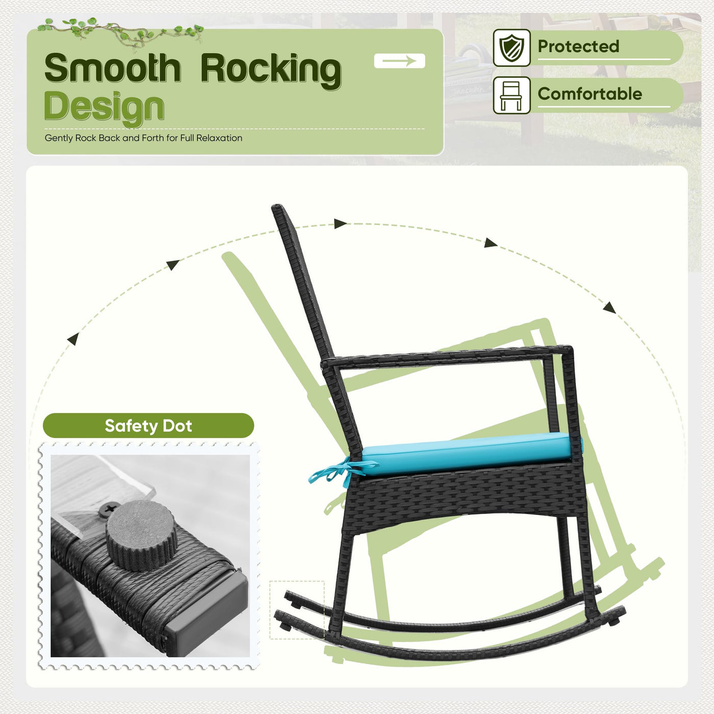 Flamaker Rocking Chair Outdoor Pe Rattan Patio Chairs With Glass Table High Back Porch Rocker For Balcony, Garden, Backyard (Blue)
