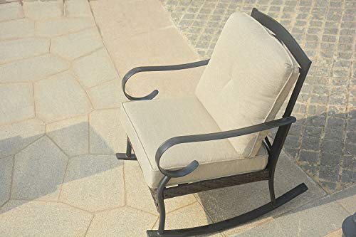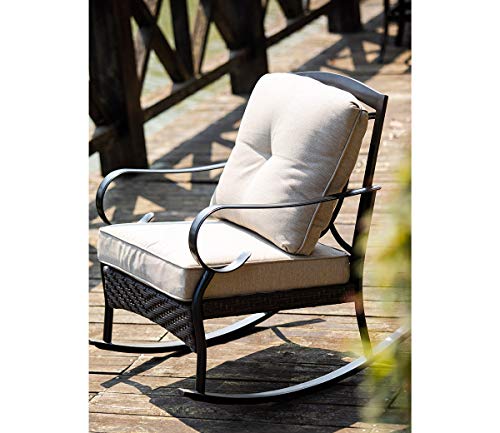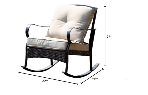 HomeRoots 25' X 33' X 34' Black Steel Patio Rocking Chair with Beige Cushions