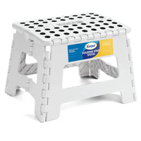 Korpai 9' Folding Step Stool For Adults And Kids Holds Up To 300 Lbs,Non-Slip Folding Stools With Portable Handle, Compact Plastic Foldable Step Stool For Bathroom,Bedroom, Kitchen,White,1Pc