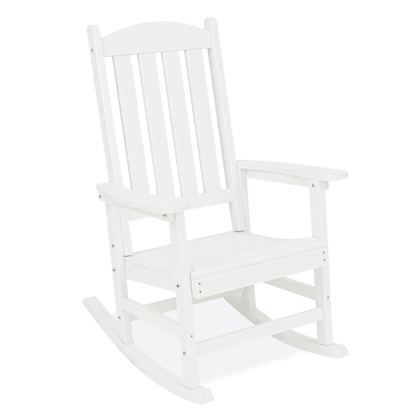 Lue Bona Outdoor Rocking Chair, Hdps Poly Rocking Chair, All Weather Resistant Plastic Outdoor Indoor Porch Rocker, Heavy Duty Rocking Chair For Patio, Lawn, Garden, 300Lbs, White