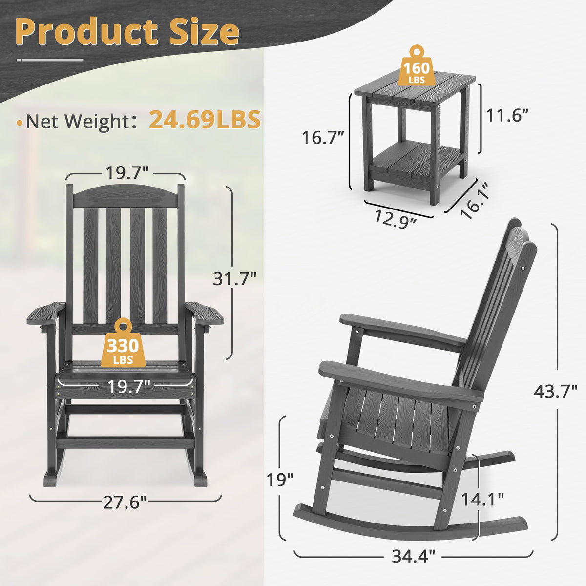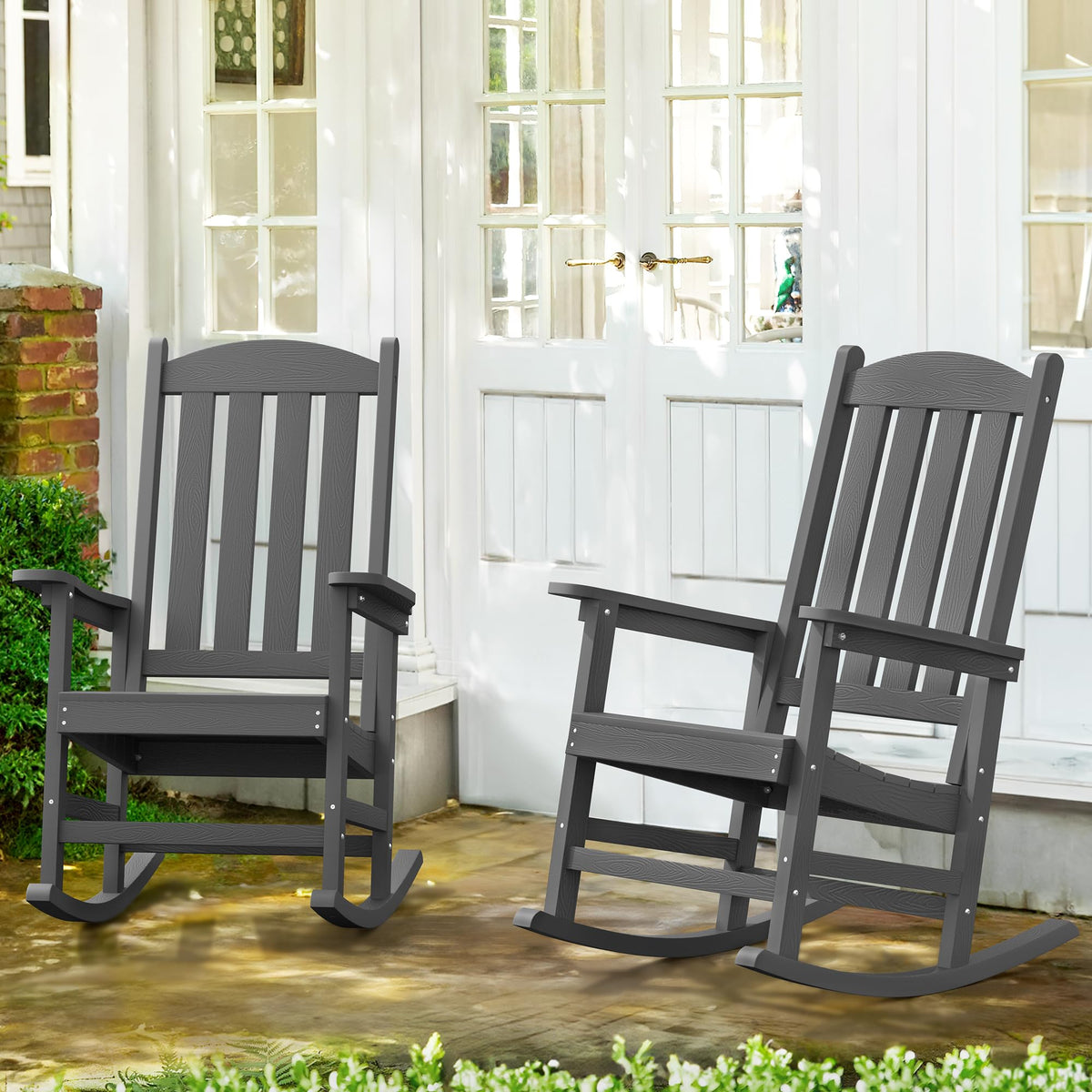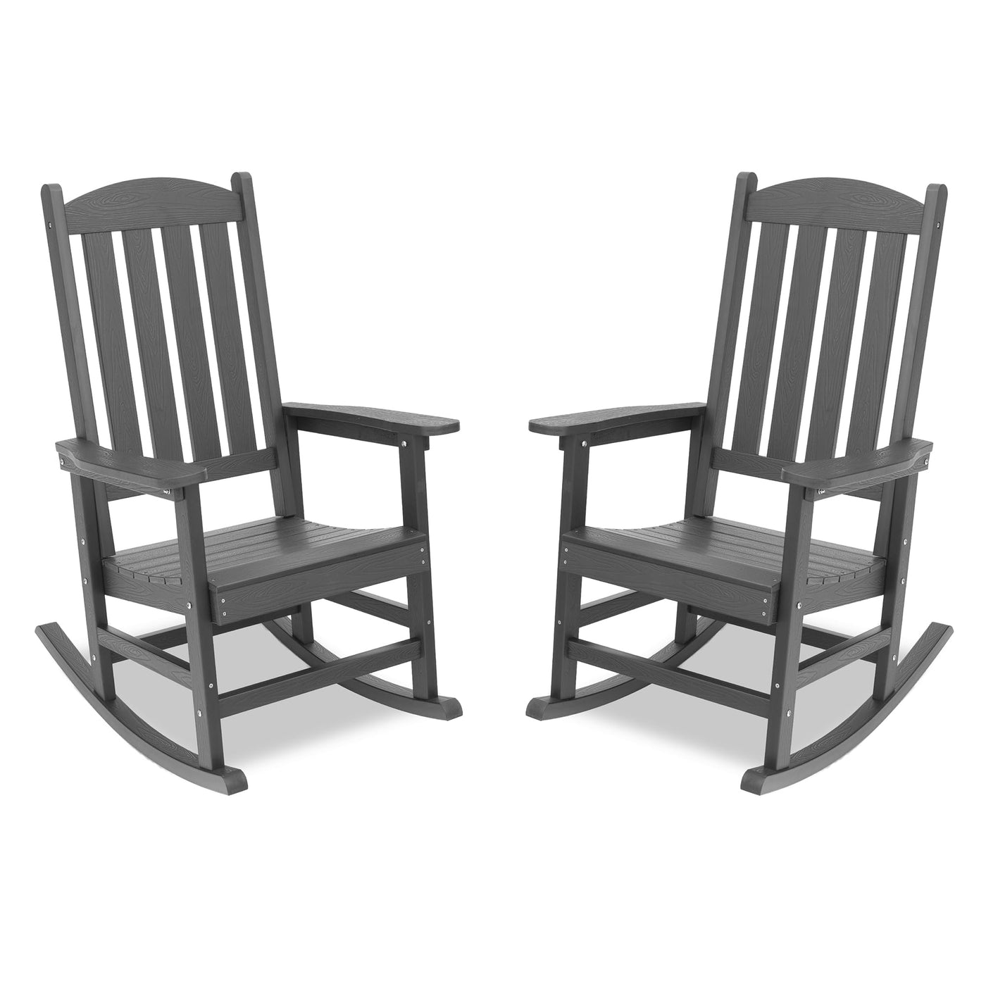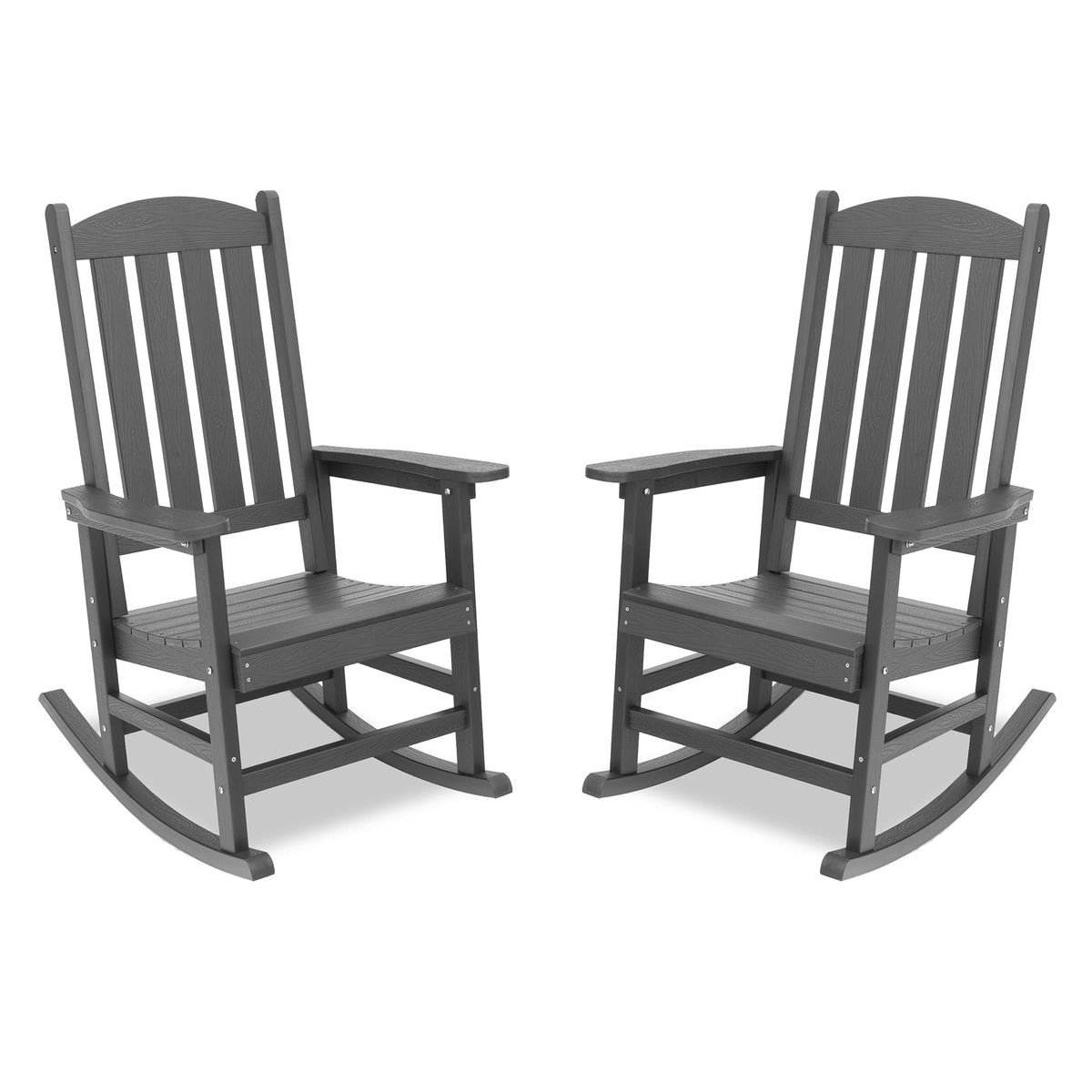 Lue Bona Outdoor Rocking Chairs Set Of 2, Hdps Poly Rocking Chair, All Weather Resistant Plastic Outdoor Indoor Porch Rocker, Heavy Duty Rocking Chair For Patio, Lawn, Garden, 300Lbs, Dark Gray