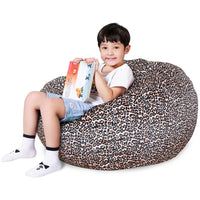 Lukeight Stuffed Animal Storage Bean Bag Chair Cover For Kids, Stuffed Animal Bean Bag Storage, Zipper Beanbag Chair Cover For Organizing Toddler And Kids' Rooms Plush Toys (Leopard Velvet, Large)