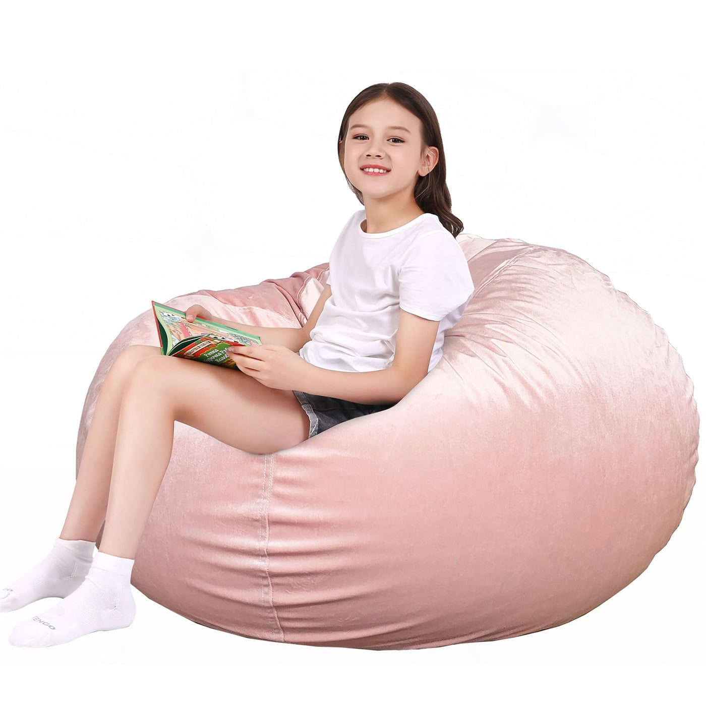 Lukeight Stuffed Animal Storage Bean Bag Chair Cover For Kids, Zipper Beanbag Chair Cover For Organizing Toddler And Kids' Rooms Plush Toys (Pink Velvet, Xx-Large)