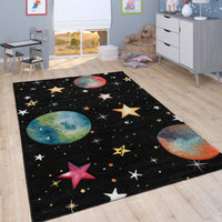 The Various Colorful Planets And The Bright Stars Make This Cute Play Rug The Star Of Any Kids Room. The Colorful Celestial Planets Are Set In A Deep Black Sky And Stand Out Especially Well Against Dark Outer Space And Take Your Children On An Imaginative Journey Of Discovery Past Glittering Stars. At The End Of A Happy Day The Dark Night Sky Brings A Touch Of Peace And Makes Falling Asleep Child'S Play! With Pleasing Hues This Rug Comes With Non-Shedding Fibers Giving It The Dependable Durability Needed For Busy Areas For Kids To Inspire Creativity And Relaxation. Certified To Be Free From Harmful Substances It Is Perfectly Safe For Your Space Fan! This Collection Has A Range Of Shapes And Sizes To Suit Your Kids Space. We Recommend A Rug Pad Underneath (Sold Separately) For Additional Cushioning And Stability.