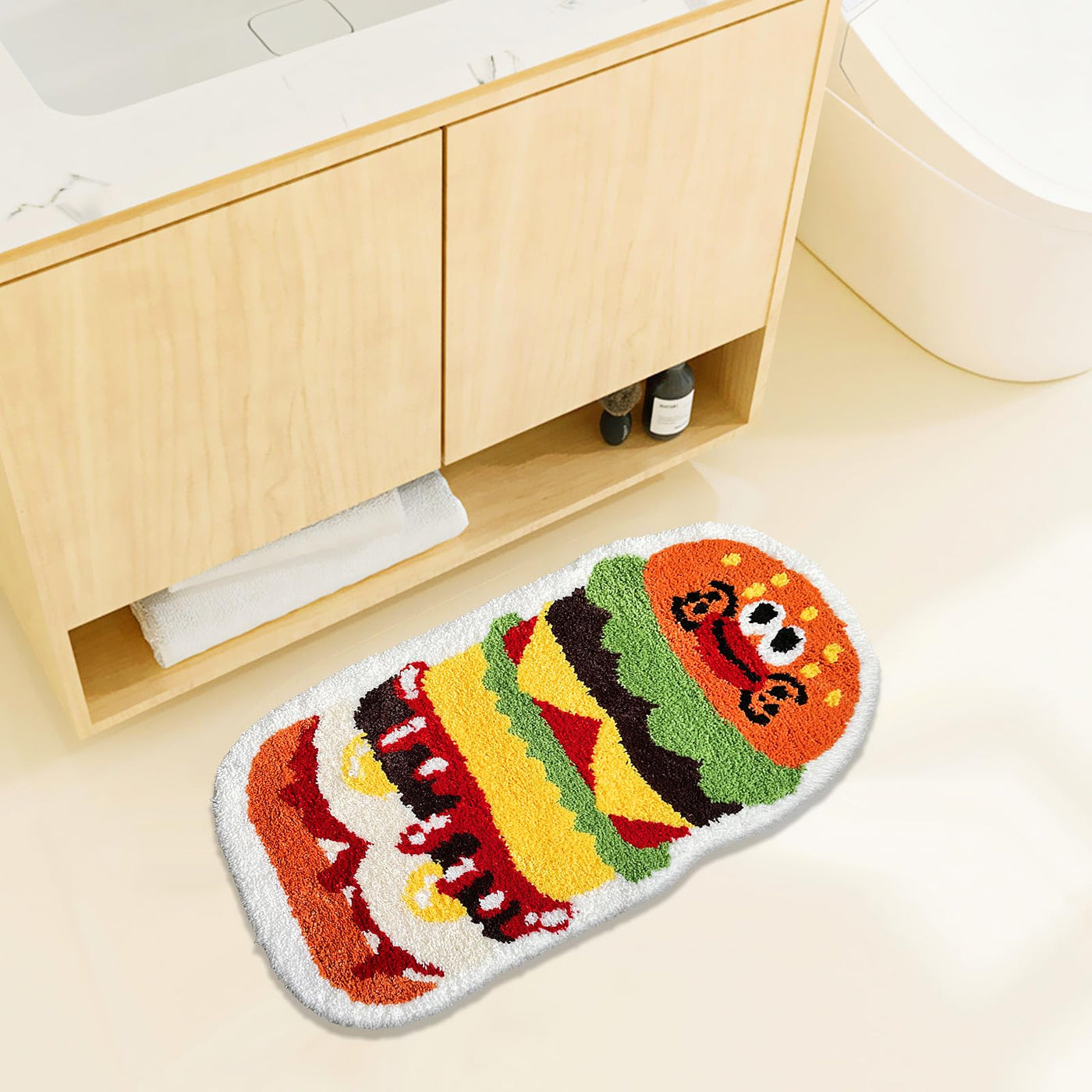 Ukeler Kids Rugs Bath Mats, Cute Hamburger Shape Area Rugs For Home Decoration Soft Nursery Rug Non-Slip Washable Funny Rugs For