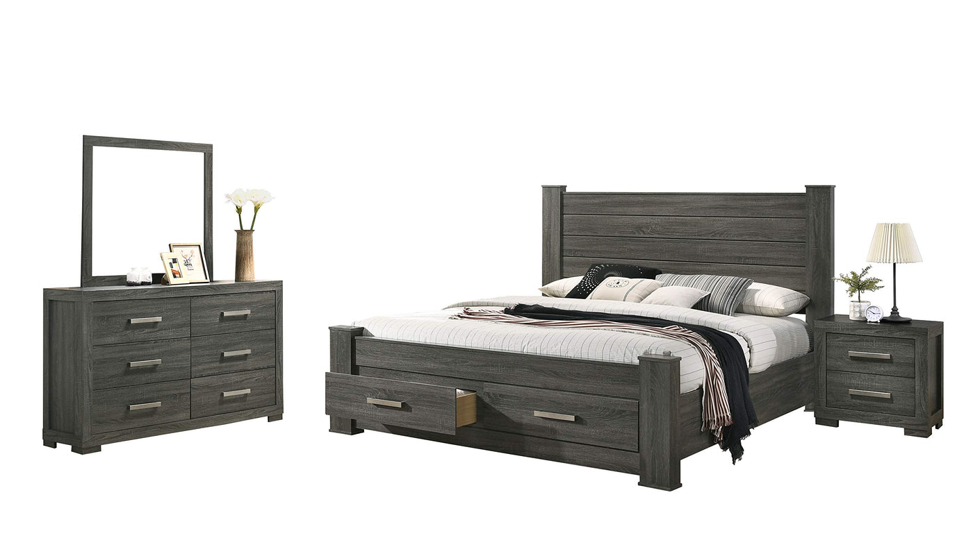 Descriptionrefine Your Bedroom With The Lisa Style Bedroom Set. This Bedroom Set Is A Perfect Match For Anyone Who Is Looking For The Combination Of Both The Traditional And Modern Look. Our Bed Frame Featuring Rustic Gray Wood Color, While The Simple Moldings Add Subtle Detailing To The Woodwork That Is Visually Interesting And Appealing. This Bed Will Surely Be A Centerpiece Of Your Bedroom. Features: Material: Mdf, Solid Wood (Rubberwood) Color: Rustic Gray Include: One (1) Bed, One (1) Dresser, One (1) Mirror, And One (1) Nightstand. Size: Queen