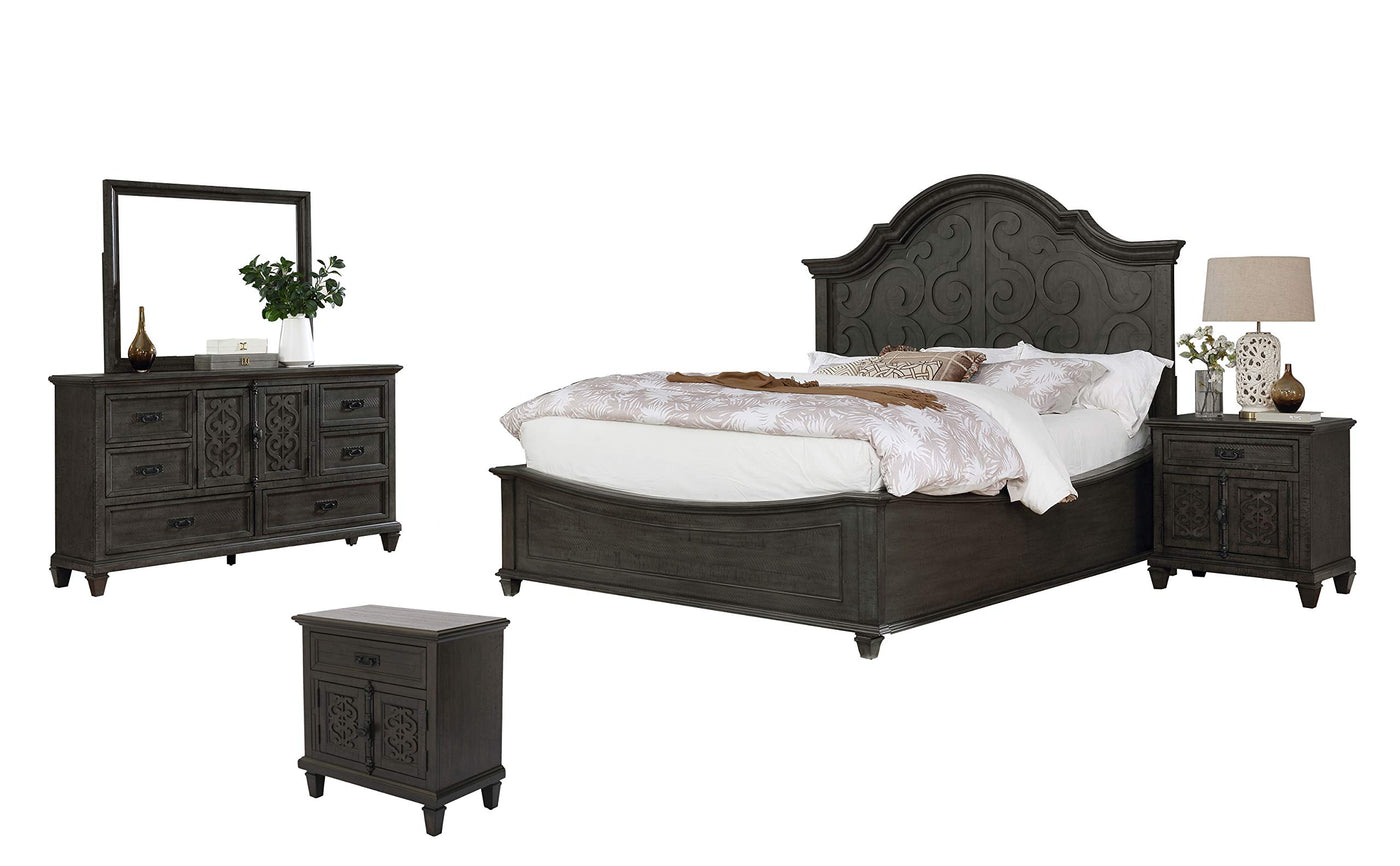 Refine Your Bedroom With The Panel Style Bedroom Set. This Bedroom Set Is A Perfect Match For Anyone Who Is Looking For The Combination Of Both The Traditional And Modern Look. Our Bed Frame Featuring Beautiful Gray Wood Color, While The Simple Moldings Add Subtle Detailing To The Woodwork That Is Visually Interesting And Appealing. This Bed Will Surely Be A Centerpiece Of Your Bedroom. Features: Material: Mdf, Solid Wood (Rubber Wood) Color: Rustic Gray Include: One (1) Bed, One (1) Dresser, One (1) Mirror, And Two (2) Nightstands. Size: Queen