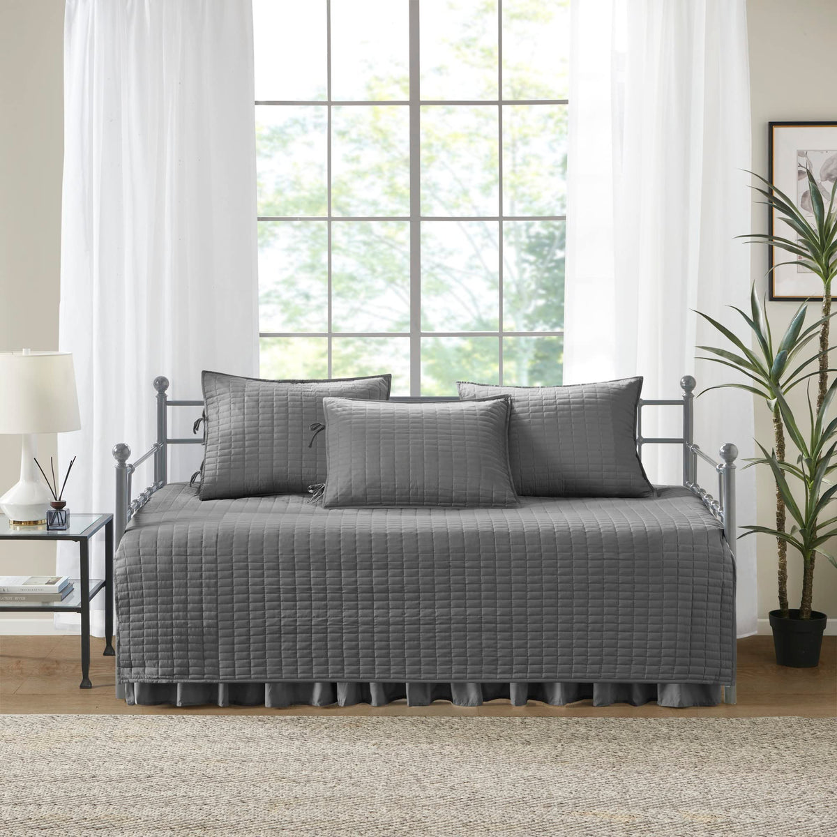 Create A Simple Yet Chic Look In Your Guest Room With The Comfort Spaces Kienna 5 Piece Daybed Set. This Daybed Cover Features A Solid Color On Luxurious Quilting Design. Naturally Breathable And Lightweight Fabric And Filling For A Perfect All Season Bedding. Comes In 5 Piece Set That Includes Matching Skirt. For Your Convenience It'S Machine Washable.