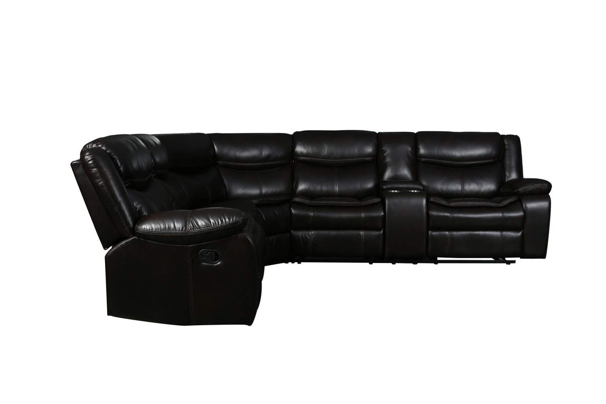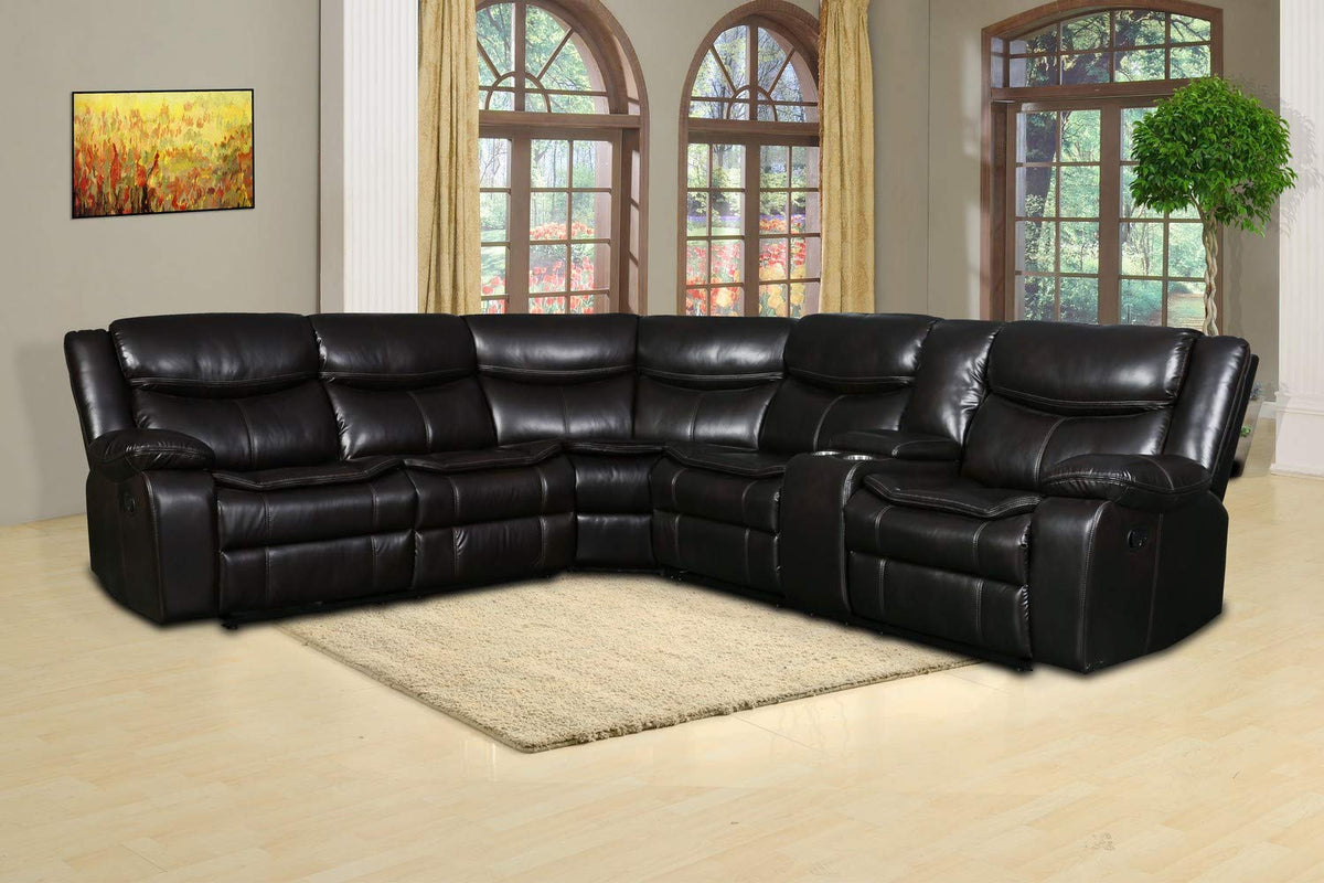 Homeroots Leather Upholstery/Solid Wood Frame 92'/106' X 37' X 39' Brown Reclining Sectional