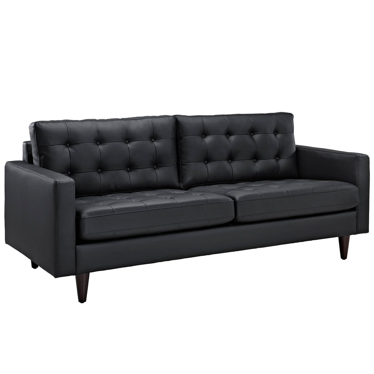 Modway Empress Mid-Century Modern Upholstered Leather Sofa And Two Armchair Set Black
