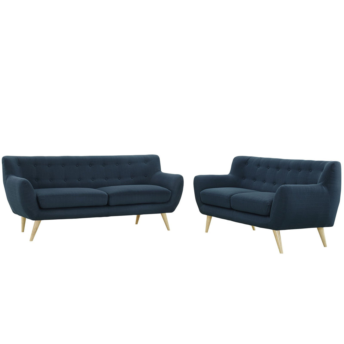 Modway Remark Mid-Century Modern Upholstered Fabric Living Room Set, Loveseat And Sofa, Azure