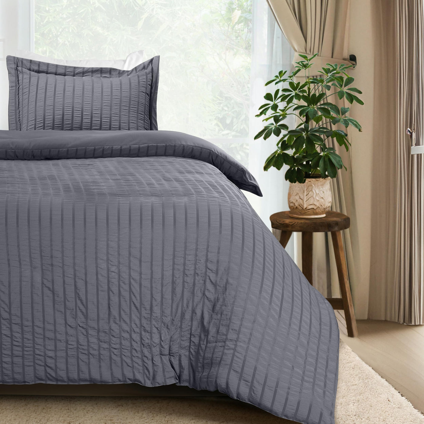 Elegantly Puckered Duvet Cover Set Of 2Pc. Made Of 100% Microfiber With A Classic Touch For Modern-Day&Rsquo;S Bedrooms. No Stress Of Wrinkles, Thanks To Its Seersucker Texture That Finds Luxury &Amp; Beauty In Its Very Originality And Makes Your Bed Cozier And More Inviting. There Are Corner Ties That Hold Onto Your Duvet And A Zipper Enclosure, Both Of Which Help Protect The Duvet And Keep It From Being Pushed To Either Side Of The Cover. Easily Machine Washable And Suggestively Sun Or Tumble Dryable On Low-Heat Settings. Give Your Bed A Breathable Seersucker Ambiance And Make Sleeping More Comfortable. Not To Forget, Shed It Over The Similar-Colored Utopia Bedsheet And See Yourself Making Some Truly Luxurious Surroundings.&Nbsp;&Nbsp;&Nbsp;&Nbsp;&Nbsp;&Nbsp;&Nbsp;&Nbsp;&Nbsp;