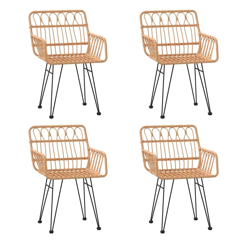 vidaXL 5 Piece Dining Set - Poly Rattan Outdoor Patio Furniture Set with Comfortable Armrest Chairs and Glass-Top Table - Weather Resistant & Easy to Clean - Brown