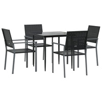 vidaXL 5-Piece Patio Dining Set - Black Outdoor Garden Furniture, PE Rattan & Steel, Tempered Glass Tabletop, Weather-Resistant, Comfortable Seating with Armrests, Garden/Patio/Deck Use
