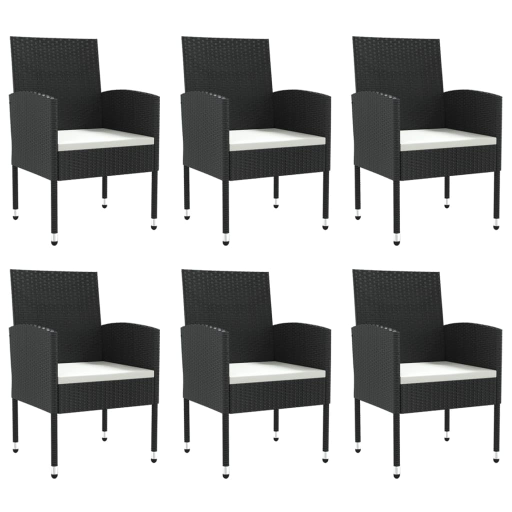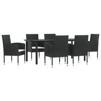 vidaXL 7-Piece Patio Dining Set - Outdoor Furniture Set with Black Poly Rattan and Steel, Tempered Glass Tabletop, Comfortable Seat Cushions