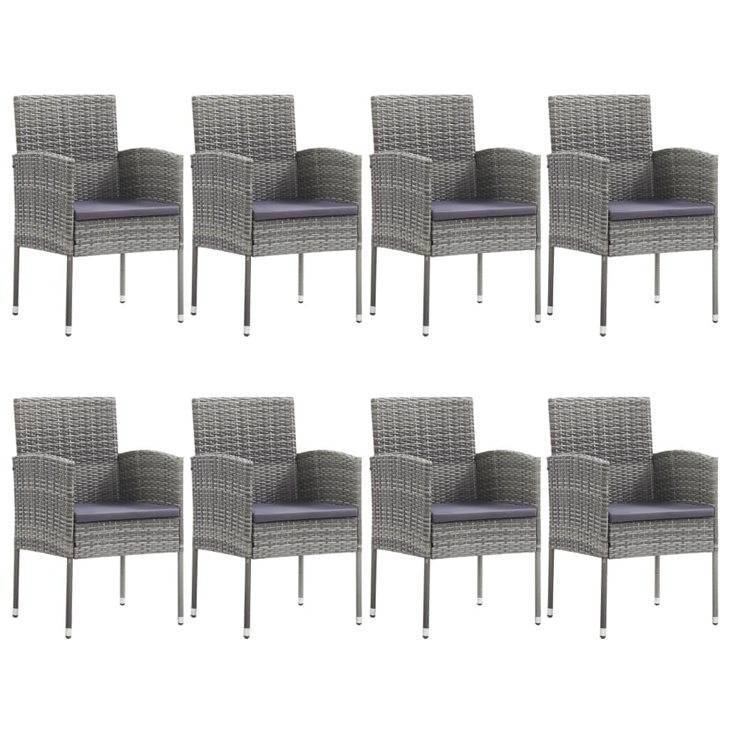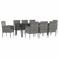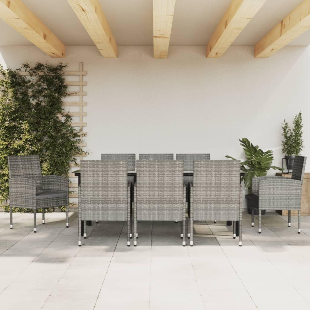 vidaXL Modern Patio Dining Set, 9 Piece, Gray and Black Poly Rattan and Steel, Easy Maintenance with Tempered Glass Tabletop and Comfortable Cushions