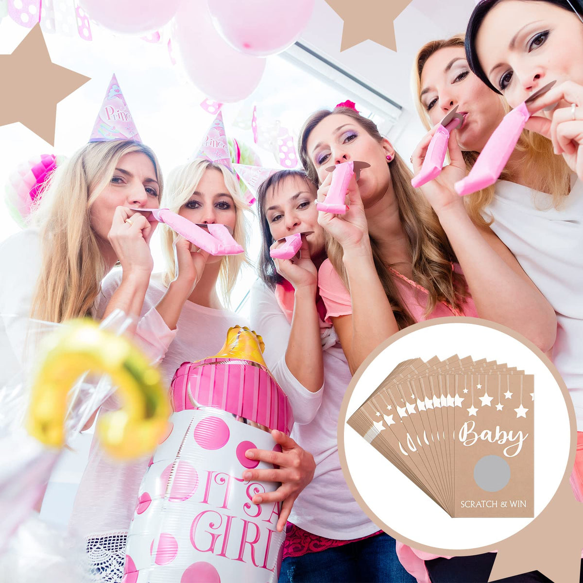 Q: How do you play with the scratch off cards?A: To play, guests can use their nails or a coin to scratch off the silver area on the cards, revealing whether they have won or lost. The excitement adds to the fun of your event!