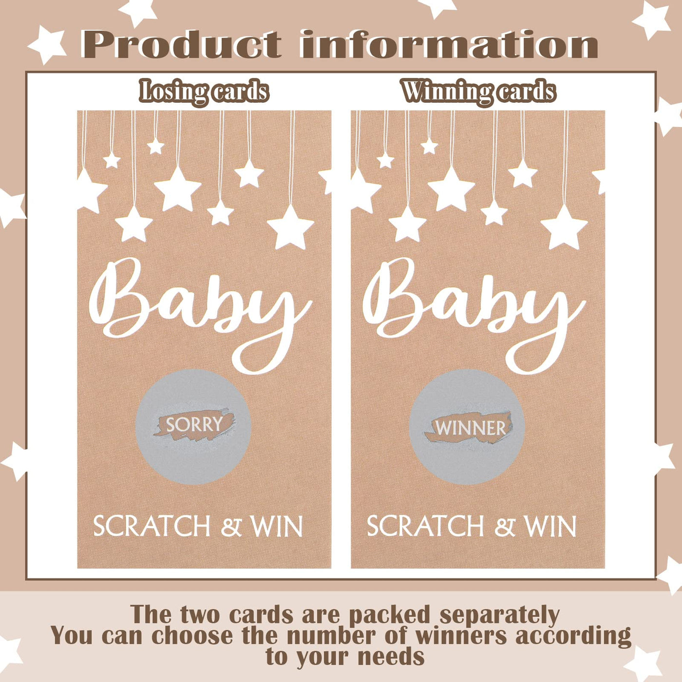 Q: What occasions are these scratch off cards suitable for?A: These rustic scratch off cards are perfect for various occasions, including baby showers, birthday parties, weddings, and holiday celebrations, helping to create memorable experiences for your guests.