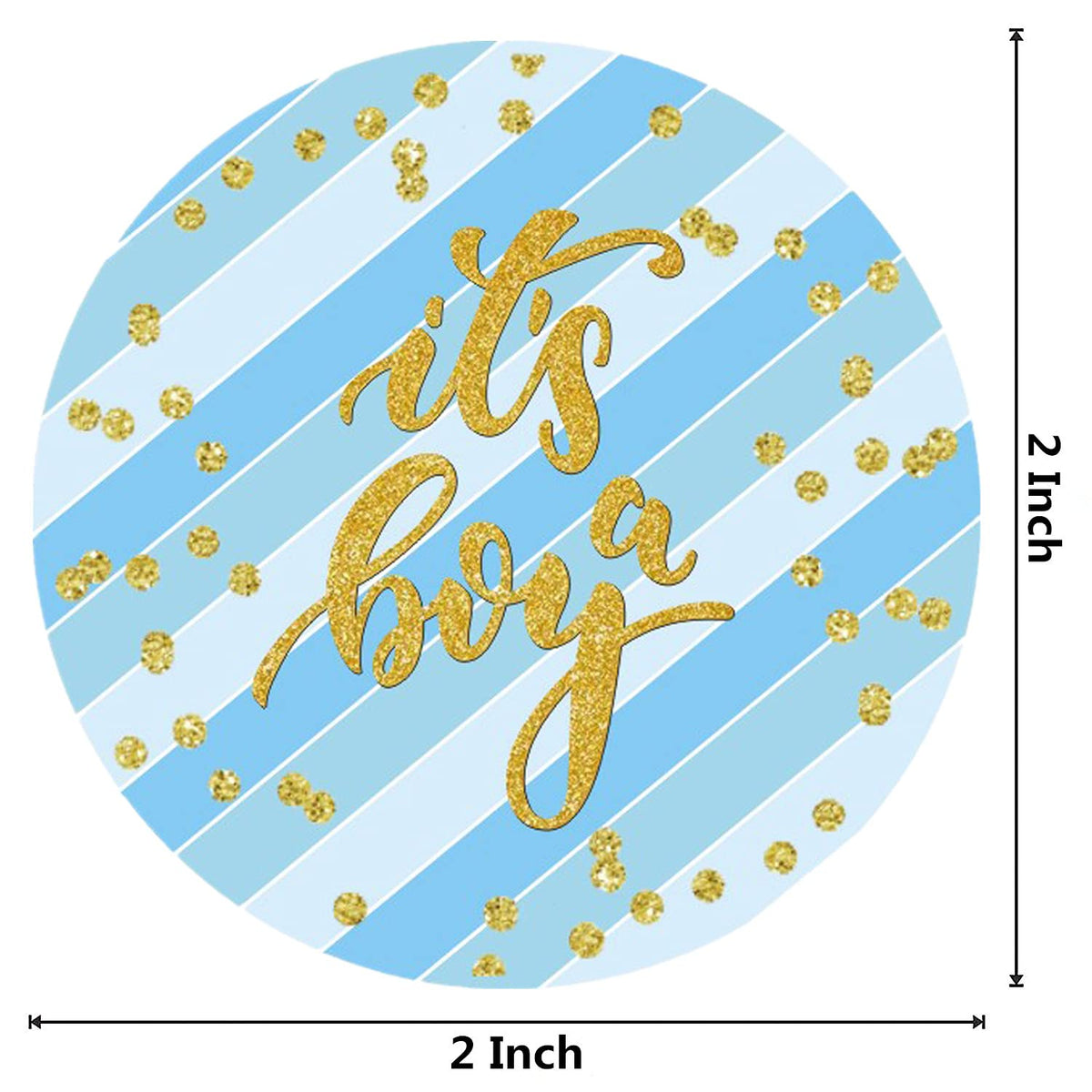 Q: What are the dimensions of the Blue and Gold It's a Boy Baby Shower Favor Stickers?A: The stickers measure 2 inches in diameter, making them the perfect size for various uses at your baby shower.