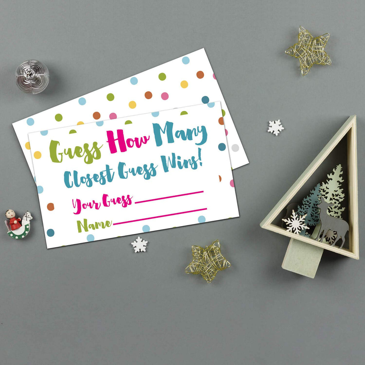 Q: How can I use these cards at my event?A: These cards are perfect for various events like baby showers, birthdays, and festivals. Guests can write their guesses for how many candies are in a jar, adding fun and engagement to your party.