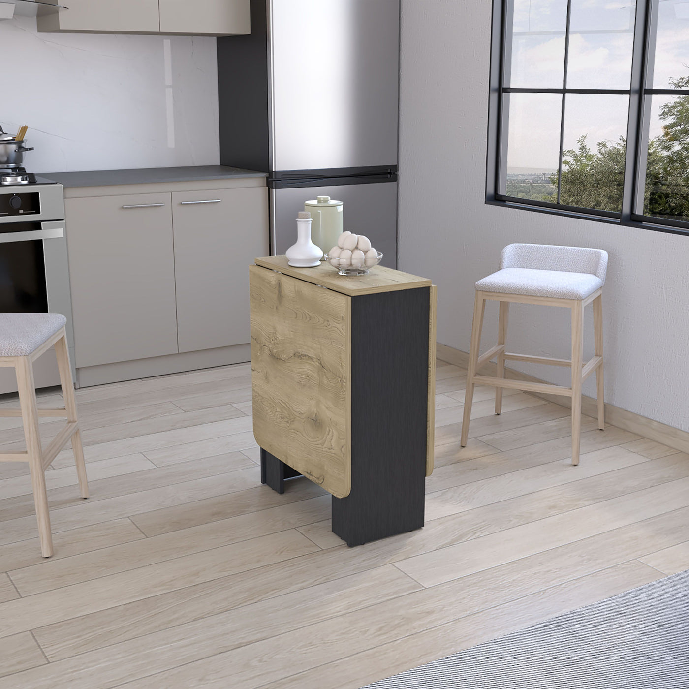 Introducing the Detroit Folding Table, a versatile marvel in space optimization. When neatly folded, it condenses to a mere 12.3 inches in width, promoting clutter-free living. Its sleek black or macadamia-manufactured wood finish exudes sophistication, effortlessly elevating any space. Whether for family dining or productive work sessions, the Detroit Table combines style and practicality, delivering a chic, space-saving solution for your modern lifestyle. Overall dimensions: 58.7" W x 23.6" D x 30.9" H.