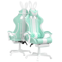 Ferghana Kawaii Light Green Gaming Chair With Bunny Ears, Ergonomic Cute Gamer Chair With Footrest And Massage, Racing Reclining Leather Computer Game Chair 250Lbs For Girls Adults Teens Kids