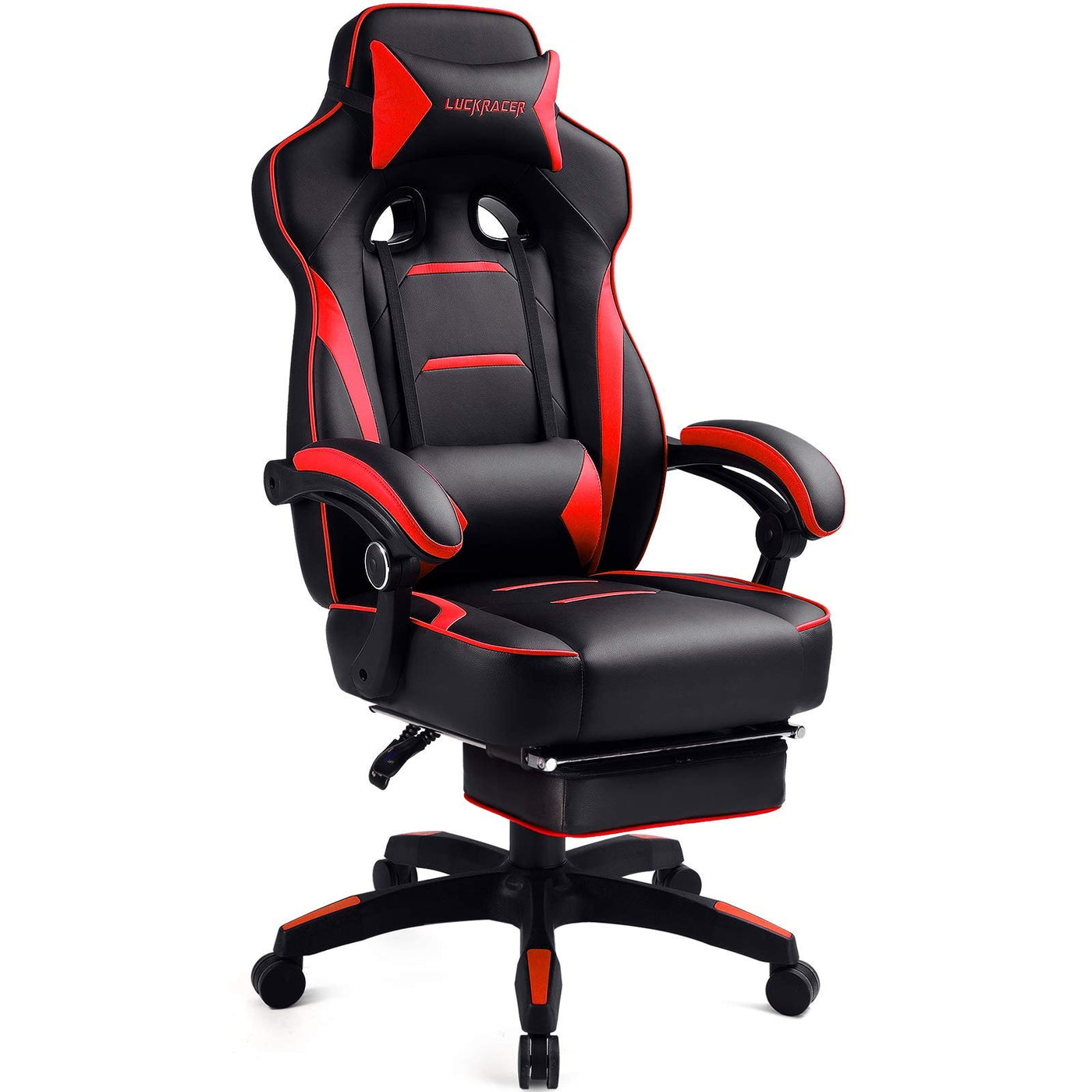 Luckracer Gaming Chair Office Desk Chair With Footrest Pu Leather High Back Adjustable Swivel Lumbar Support Racing Style E-Sports Gamer Chairs
