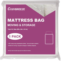 4 Mil Thick Mattress Bags For Moving, Storage And Disposal. Feature Of Plastic Mattress Bag Cover: - 4 Millimeter Heavy Duty Polyethylene Material. Tear Resistant And Water Resistant. - Perfect For Box Spring As Well As Mattress Transportation. - Available In Twin Xl, Queen And King Sizes, Meets All Most Needs For Mattress Disposal. - No Vent Holes. Excellent For Long Term Storage And Moving. - Use Packing Tape From Your Moving Supplies To Seal The End Tight With No Gaps. - 100% Recycled, Reusable And Environmentally Friendly Plastic Material. Benefit Of Mattresses Covers: - Ideal For Storing Or Transporting Mattresses, But Also Useful For Protecting Other Bulky Furniture Like The Patio, Chair, Sofa, Loveseat, Even Christmas Trees. - Great Option For Pillow-Top And Oversized Mattresses. - These Durable Bags Can Also Be Used To Dispose Of An Old Mattress. Dimensions: - Twin Xl: 54 X 96 Inch (Fits Twin Xl And Smaller Mattresses) - Full: 54 X 100 Inch (Fits Full And Smaller Mattresses) - Queen: 76 X 96 Inch (Fits Queen Mattresses) - King: 94 X 96 Inch (Fits King & California King Mattresses)